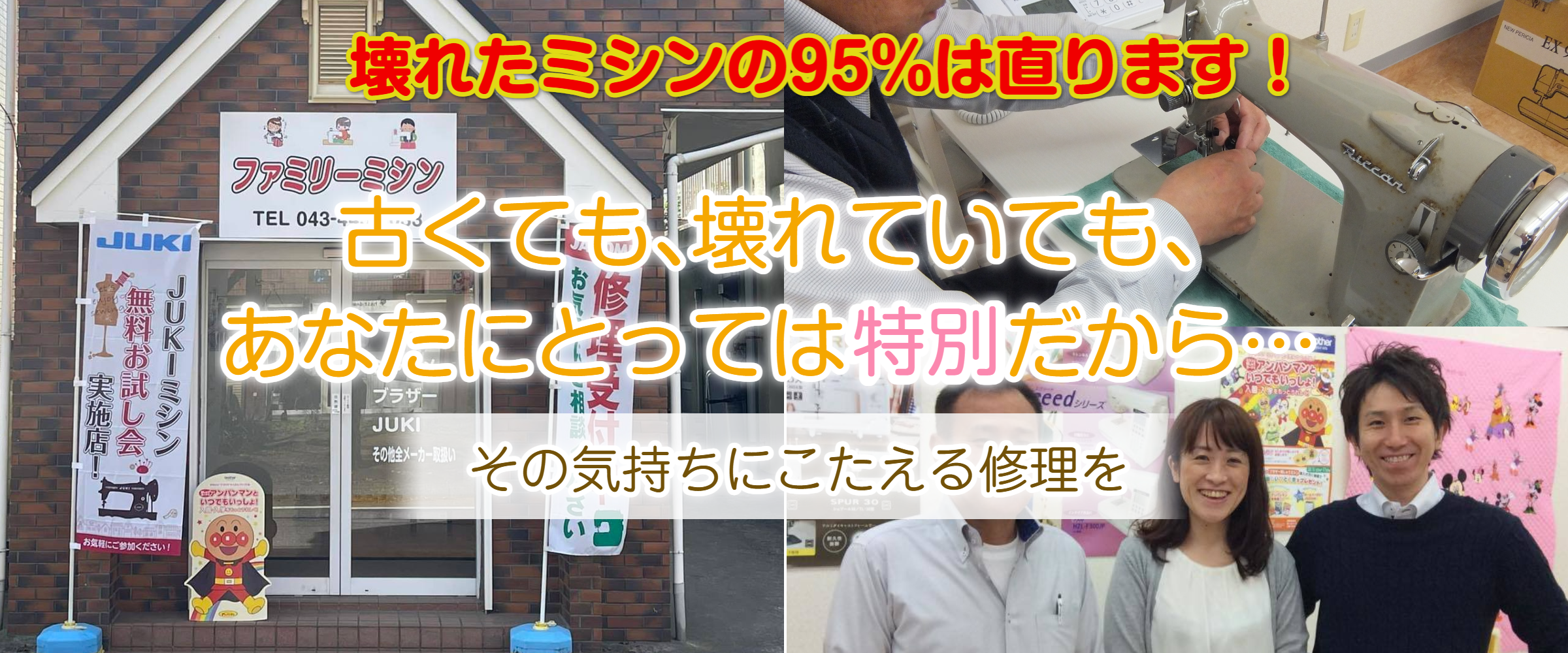千葉県でミシン修理・メンテナンス、ミシン販売店をお探しなら、千葉市花見川区のミシンの修理サービスショップ・ファミリーミシン千葉へどうぞ。